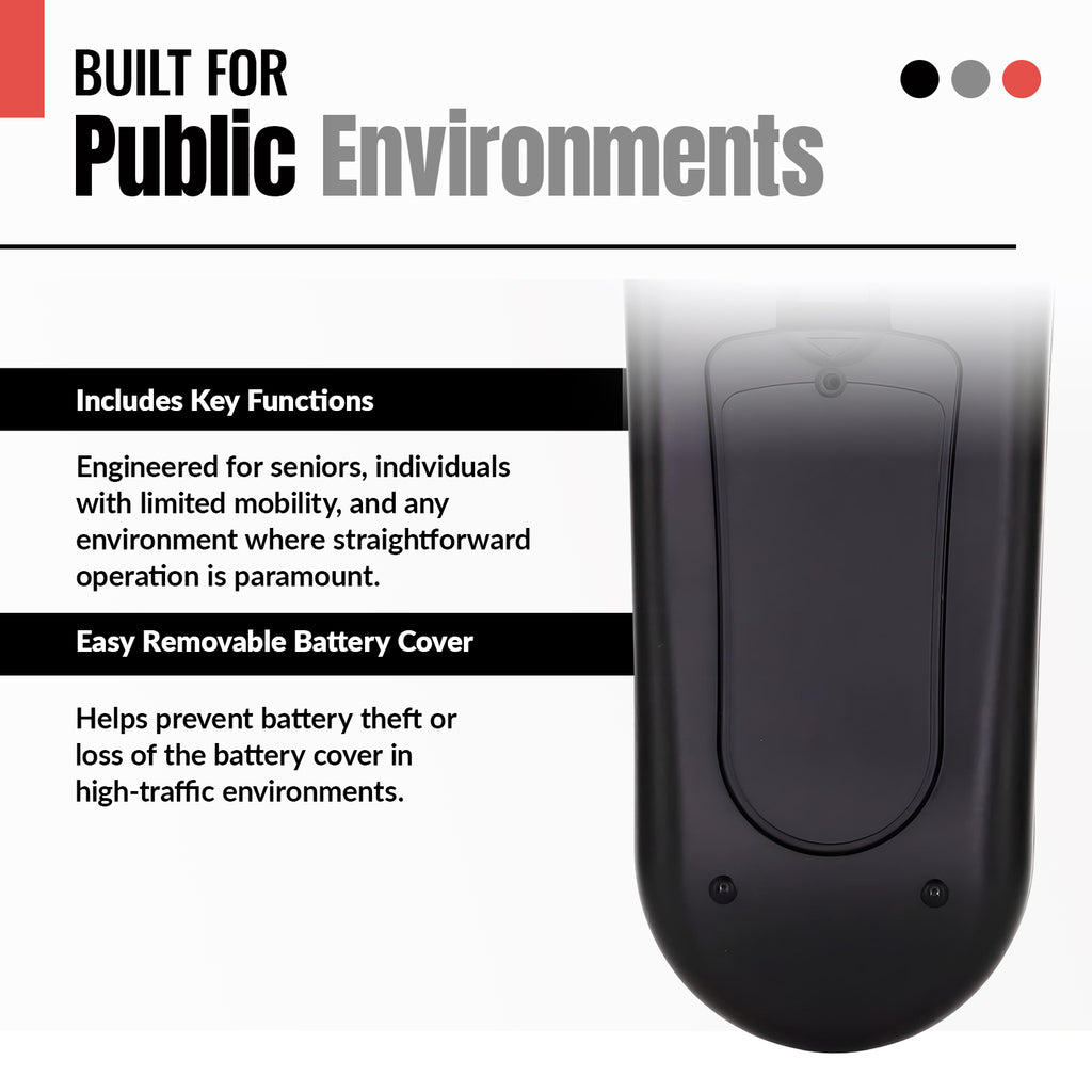 - Excludes MENU button to avoid guest access to TV settings